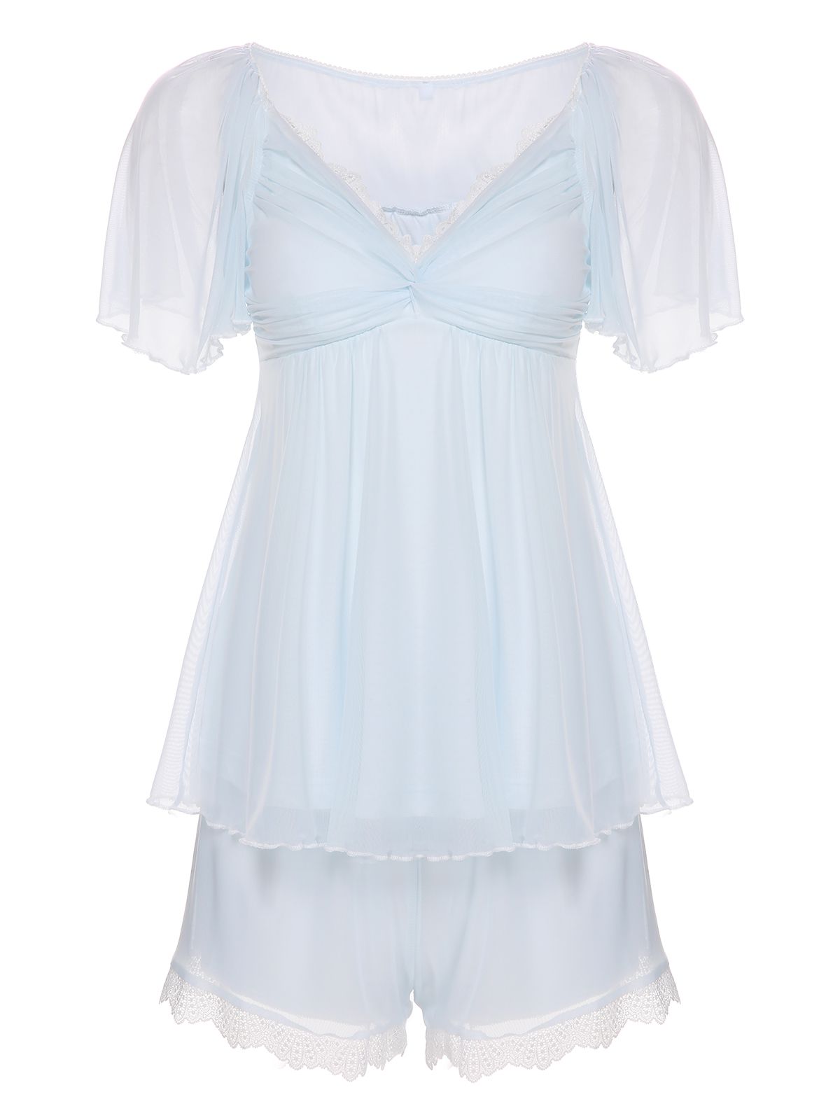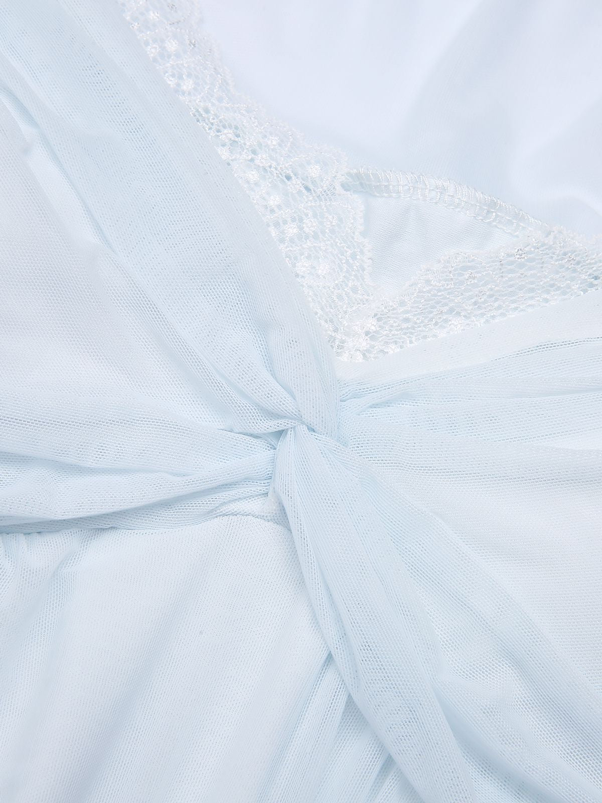 2PCS Light Blue 1940s Knot Lace Sleepwear
