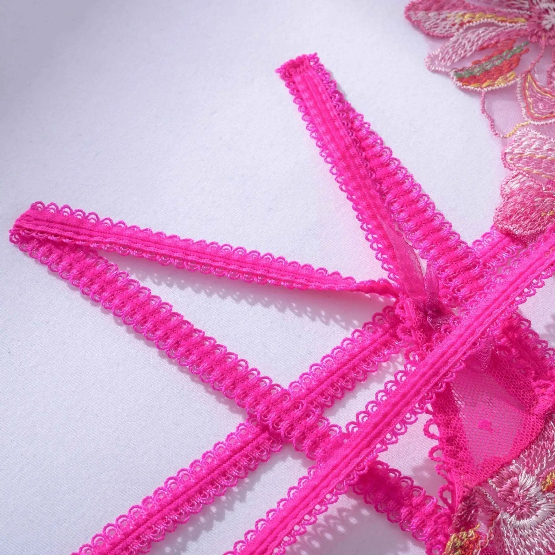 Marlo - Sheer Mesh Floral Embroidered 3-Piece Lingerie Set